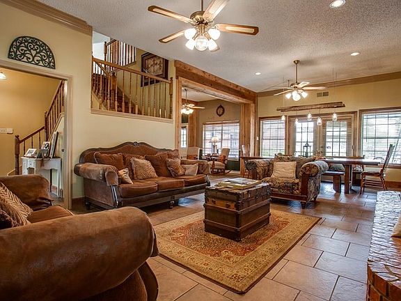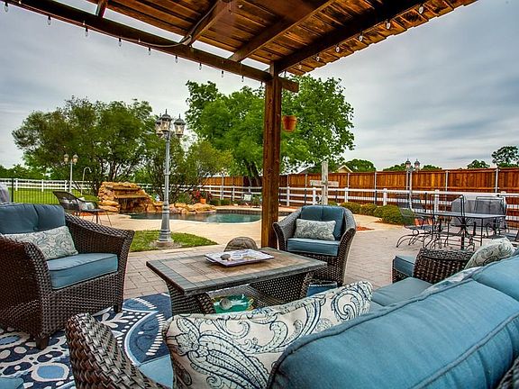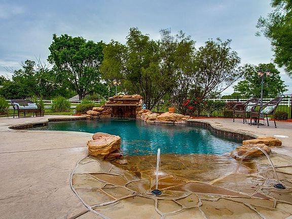 It feels like home the minute you drive up! 6-3-2 on .74 acre fenced. Backyard Oasis!!! Saltwater, beachfront, gated, grotto diving pool. New carpet upstairs! Wrap around porch. 5th bed has private entrance and living area. 6th bed flex room for study or library. Lifetime warranty on roof and exterior trim paint. Kitchen granite counters, island, walk-in-pantry, lots of counter space, ceiling fans throughout, zoned HVAC, programmable thermostat, sprinkler system, 2 fireplaces, security system, garage door opener, landscaped.