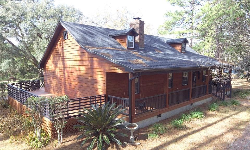 Well maintained 3 bedroom 2 bath Cabin style home on 2 acres just South of Thomasville. Property is just 8 miles south of Lowes & Publix with easy access to Thomasville or Monticello. Property has a dedicated asphalt driveway off of US HWY 19 south with covered parking for vehicles and toys. Very functional Split Floorplan with an open kitchen and living room with fireplace. Real wood flooring and ceramic tile throughout. Great home for entertaining with ample size kitchen and lots of porch and deck space. Fenced in yard for dogs. Screened in deck with twin sized porch swing. Call listing agent or your favorite Realtor for a showing.