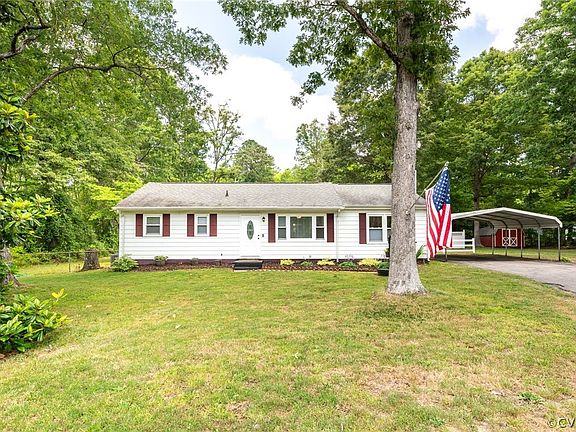 This picturesque property sits on 1.83 acres tucked perfectly off the road, surrounded by trees and nature. This ranch style home has 3 Bedrooms and 1 1/2 baths, a family room/dining room, a large kitchen and an amazing sunroom off the back. Some recent updates include new waterproof luxury laminate flooring as you enter, new luxury vinyl in the kitchen, new pex plumbing, new hot water heater, new pressure tank for well pump, new drywall and insulation in walls, spray insulation throughout the attic, a new front door and much more. The large acre plus lot has loads of possibilities. There are 2 detached storage sheds, a large 2-car carport, a deck off the sunporch and ample parking for multiple vehicles. This home has been well loved over the years and is ready for it's next caretaker. It's an ideal option for those wanting a peaceful setting without sacrificing the convenience of quick access to shopping and major highways.