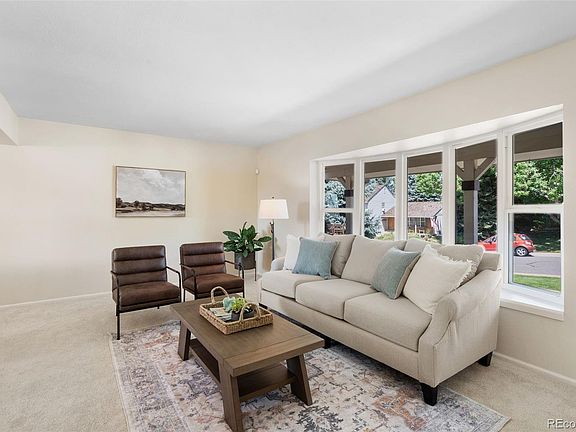 Welcome to your dream home in the highly sought after Cherry Park neighborhood! Nestled in a tranquil cul-de-sac, this charming and perfectly updated home offers 4 bedrooms and 3 bathrooms. As you step inside, you are greeted by a beautiful living room featuring an expansive bay window looking out to your huge covered front porch and manicured front lawn. The separate dining area will accommodate family meals and hosting gatherings with ease. The kitchen features brand new Della Terra quartz countertops and sparkling white cabinets! Meal prep with ease with ample counter space and a spot for barstools offering additional seating. Enjoy meals in your kitchen dining nook featuring another bay window and beautiful views of the backyard. This room opens to the family room which showcases a beamed vaulted ceiling and gas fireplace, making it the perfect space for relaxing and entertaining. There are 4 bedrooms upstairs, including a spacious and bright primary suite with a beautifully updated bathroom and 2 closets with organizing systems. There are 3 additional bedrooms and a full bathroom on this level. Downstairs, you'll find a partially finished basement offering endless possibilities for customization to suit your needs. Enjoy your morning coffee on the back deck with mountain views, mature trees, and stunning landscaping. The yard also has a shed providing add'l storage space. Bonus..the furnace and A/C are 2 years old, new roof shingles in 2021, the washer/dryer, kitchen range and refrigerator were replaced 5 years ago as well as all windows throughout the house! Don't miss out on this opportunity to own a piece of paradise in a prime location. This wonderful home is conveniently located near tennis courts, open space trails, Highline Canal, Cherry Park, Holly Pool, Denver Tech Center, I-25, Park Meadows, shopping, entertainment, 3 grocery stores within 1 mile, and the award winning Cherry Creek 5 School District. Check out the video at https://bit.ly/3TlTSnd
