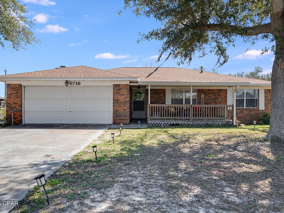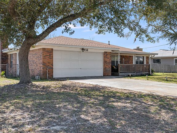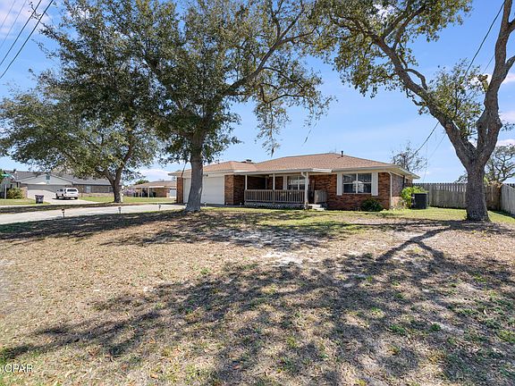 Spacious ALL brick ranch home on a corner lot that is just minutes to Tyndall Air Force Base. SELLER IS READY TO SELL! This 3 bedroom 2 bath home is perfect for a young family, retired military or a starter home for someone no longer wanting to waste money on rent. This home boasts over 1700 square feet, large family room with brand new porcelain tile flooring, cozy gas fireplace and plenty of room for a big dining table and hutch. The bedrooms all have new carpet and large closets. The master bedroom has a spacious walk-in closet. The kitchen has an eat-in breakfast nook with bay window, lots of cabinets and the laundry room is right off the kitchen. The seller has just replaced the HVAC system and the roof was replaced in 2019. The front of the home has a lovely covered porch and a gorgeous oak tree in the front yard. This home sits on a corner lot and the side and backyard are completely fenced in. There is a storage shed in the backyard that is perfect for all your lawn equipment. This home has great curb appeal and great elevation. THIS HOME IS NOT IN A FLOOD ZONE!