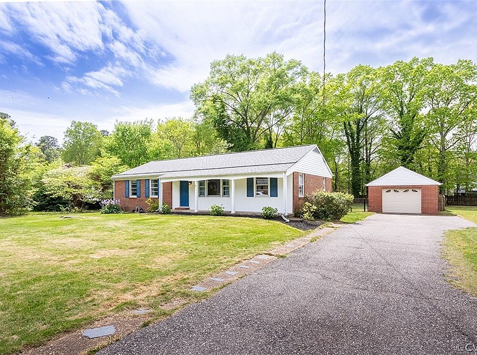 Wow! A 3 bedroom, 2 bathroom BRICK ranch home with a GARAGE and LARGE FENCED backyard at this price!! HARDWOOD floors are throughout the Living Room, hall and under the carpet in the bedrooms. The Kitchen with a NEW Refrigerator and NEW Dishwasher also includes a Breakfast Nook. The Primary Bedroom boasts an EN-SUITE bathroom. The two other bedrooms are good sized and share a hall bath with tub/shower. A bonus Great Room provides additional living space. You will enjoy relaxing on your SCREEN PORCH overlooking your private backyard. The detached GARAGE has electricity and water. A NEW ROOF (2024) and SOLAR PANELS (2023) provide energy savings! Refrigerator, washer and dryer CONVEY. This wonderful home is located on a quiet street in the heart of Chesterfield County close to highways, shopping, restaurants. *Home qualifies for United Bank's Pathways Home Program with up to $10,000 GRANT towards closing costs & down payment!*