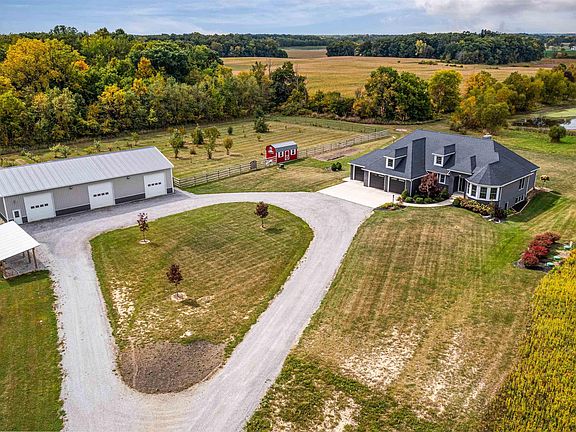 Experience the tranquility of country living, the thrill of outdoor adventure, and the luxury of a custom-built Bob Buescher home, all in one exceptional package nestled on 46+ acres of pristine country paradise! This exceptional property offers a unique blend of luxury, comfort, and adventure!! Featuring 5 spacious Bedrooms, plus 3 Full & 1 Half bathrooms, ensuring ample space for family and guests. An open concept floor plan and a cozy fireplace in the LR provides warmth and charm, while the kitchen and dining area overlook the sprawling landscape, offering breathtaking views that change with the seasons. The gourmet Kitchen boasts top-of-the-line appliances, custom Zehr cabinets (all throughout home), huge center island, double ovens, and gas cooktop, all complimented by the elegant quartz countertops, plus a large walk-in pantry. The Primary Bedroom offers a spa-like feel. The incredible en-suite bathroom features a large free standing soaker tub with stunning chandelier, dual sinks, quartz countertops, large walk-in tile shower, and an expansive closet with chandelier to top it off! In the finished lower level, you’ll find a large Rec Room, gas fireplace with marble tile surround, in addition another bedroom and a full bathroom plus, one of the STAND-OUT features of this home is the built-in gun vault/safe room! For outdoor enthusiasts, the list of amenities is simply unmatched. You'll find an 80x40 outbuilding, providing ample storage space for all your toys and equipment. A serene pond beckons for lazy afternoons of simply unwinding by the water's edge. For those who crave adventure, there are over 3 miles of walking & ATV trails waiting to be explored. If that's not enough, this property also boasts a shooting range. Whether you're an avid ATV rider or simply enjoy long walks in the orchards surrounded by nature and lots of wildlife, you'll find endless opportunities for outdoor recreation right outside of your doorstep!