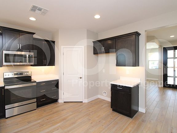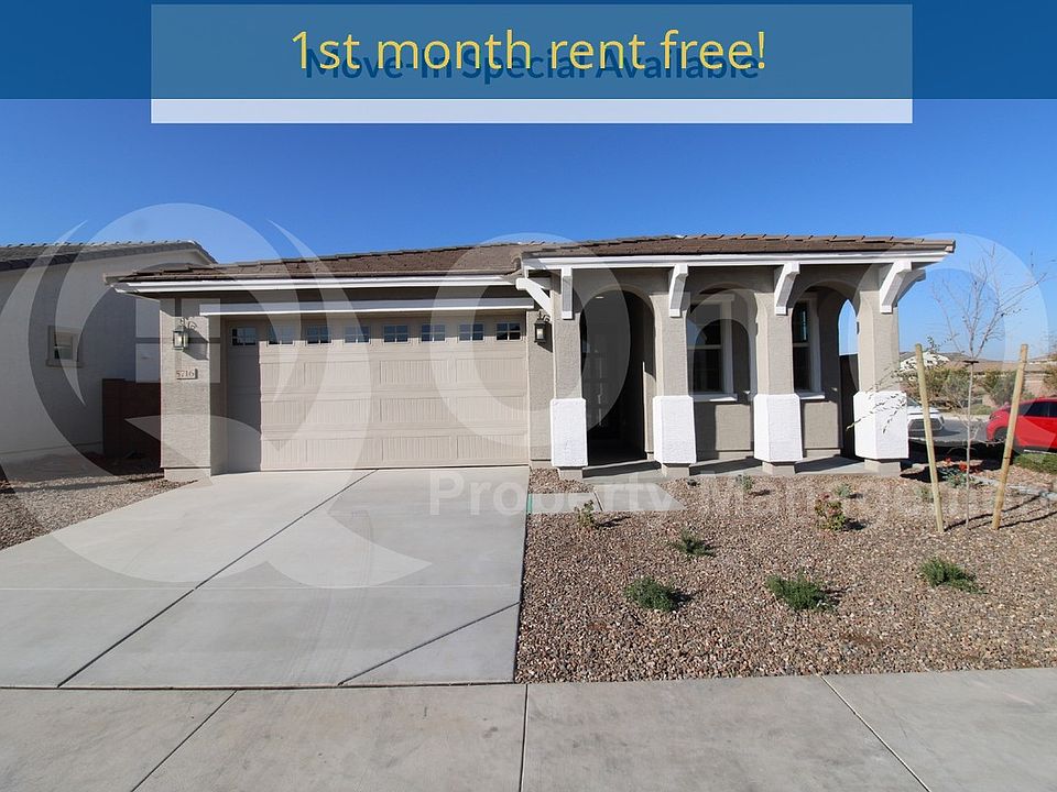 FIRST MONTH RENT FREE!! 1,960 SQ FT! 4 bedroom, 2.5 bath home in Mesa's La Mira community! $600 Credit Towards Move In Costs. 2023 build with modern upgrades + smart home features throughout. Desirable single story floor plan! Stunning eat-in kitchen with expansive breakfast bar. Kitchen opens to spacious living/dining area with sliding door patio access! Great for indoor/outdoor entertaining. Neutral interior with tile flooring in all the right places! This home offers 4 generously sized bedrooms + flexible den space. Den makes great home office/bonus room! Primary suite with full bath + walk-in closet. Enjoy a low up keep backyard with covered patio! 2 car garage. La Mira is a well maintained community with community pool, playgrounds, & biking/walking trails! Great Mesa location with easy SR-24 access.