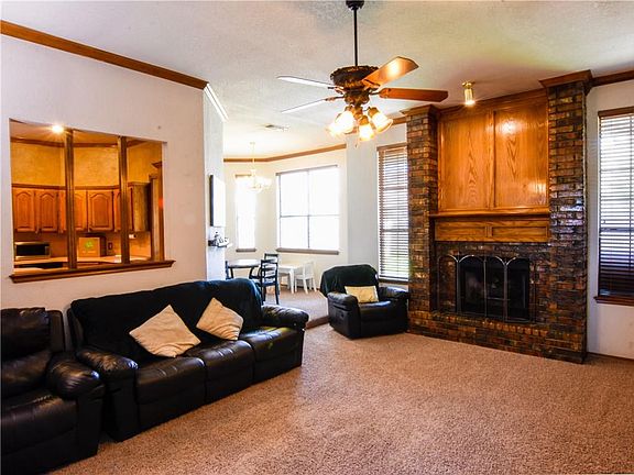 This home has been well cared for. Large kitchen with Island, built-in table in kitchen, lots of cabinet & pantry space, formal dining room has built-in hutch, crown molding throughout, large living room with open views to the kitchen & dining area. Appliances are a stainless steel range, dishwasher, microwave, and fridge. Master bathroom has 2 walk in closets, double sinks. Good sized fenced backyard.Easy interstate access. Close to Tinker, Boeing, shopping centers.