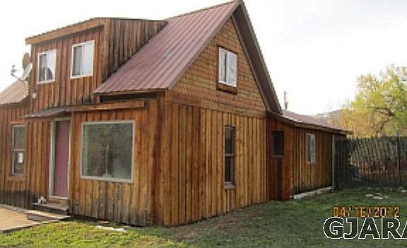 This property may be eligible for the FHA $100 down program. Ask your agent for details. Rustic log home in beautiful Colorado mountains with 360 degree views. This home includes 4 bedrooms, (one on main level) 1 and 3/4 bath, hard wood floors in living room and study. Exposed log walls in study/office. Large dining room and kitchen with breakfast nook. Laundry room located on back porch area. Detached single car garage. Lots of outbuildings and shop. Small irrigation ditch running through property. 1.125 acres of land. Close to Plateau Valley School .