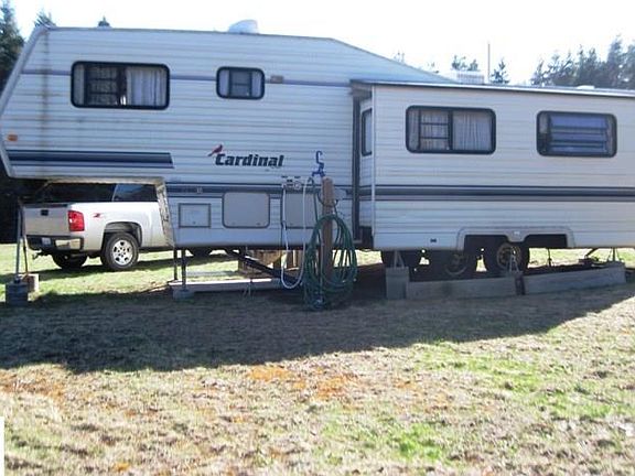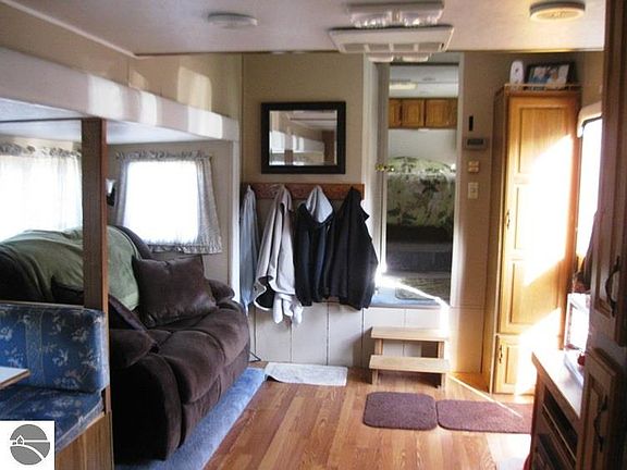 The perfect getaway property or future homesite thoughtfully carved out of the pine plantation with underground electric, 5 inch water well and septic system adequate for a new home. Luxury camping with a 3 piece 8 x 8 bathhouse with 8 x 10 attached storage area, a furnished 12 x 20 sleeping cabin with a ladder to the sleeping loft and a 34 ft Cardinal fifth wheel that is set up on piers for permanence, completely furnished and in great shape. Additional 4 x 8 building to hold tools and 8 x 8 building for a riding lawn tractor. This exceptionally nice 10 acre parcel is surveyed and has an atv/walking trail thruout the pines and the hardwoods in the back. 1000's of acres of state land within 1 mile for hunting, trail riding, etc!
