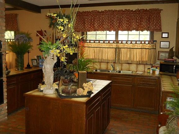 One owner custom built home with brick floors, antique doors with beveled transoms, center island in kitchen, stained cabinets and master suite downstairs.