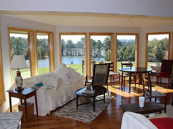 This beautiful ranch home has four bedrooms tucked away in the charming and well-established Belle Meade Estates. Just minutes from Crossroads, NCSU, and Downtown. This home is built on a bluff that looks over a 5-acre pond which empties into Lake Wheeler. The family room has 11 oversize windows and a fireplace plus entrances to decks on either side taking full advantage of the spectacular views.  This gorgeous home sits on 1.74 incredible acres that give you plenty of room to live life. The remarkable home has 12-foot ceilings and gorgeous antique hardwood floors throughout plus luxury bathrooms, an eat-in kitchen, and a 2 car garage.   It boasts an open floor plan and was fully renovated top to bottom in 2016, with 12-foot ceilings in the main living spaces.  The home has 3 fireplaces, a sauna, four decks, and a covered front porch for enchanting entertaining. There are multiple possibilities for a home office. Whether you want to hike around Lake Wheeler, launch a canoe or kayak or get into town or RTP quickly this home offers great possibilities. On the other hand, you can sit on one of the delightful decks and enjoy all the wildlife that is attracted to the Lake Wheeler Watershed. The downstair in this house has a second kitchen, bedroom, and bathroom and can be used as a mother-in-law suite or used when you have visiting friends and family. The downstairs has a separate entrance and takes full advantage of the wonderful views.   The house is wired throughout with cat 6 cable in every room, as of 2016 the house has all new electrical wiring, new HVAC, and new plumbing. The house has foam insulation throughout the ceiling and every outside wall. Three-fourths of the downstairs is underground and stays at a constant 68 degrees regardless of the season. This home has been designed to be handicap friendly or a forever home with one small stair to negotiate to get into the main living area which provides access to the entire upstairs. All four external doors have deadlock bolts and the house has a security system. This home has also been wired for a whole house generator should you ever lose electricity. This is an elegant house without feeling grand and a spacious home that feels comfortable and cozy.