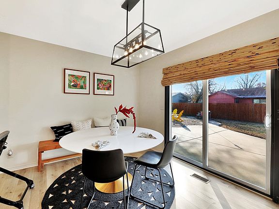 This beautifully remolded home offers a spacious and modern living environment. Inside, a neutral color scheme creates a welcoming atmosphere throughout the open floor plan. The kitchen is equipped with granite countertops, stainless steel appliances, a subway tile backsplash, pendant lighting, ample cabinet space, and a walk-in pantry, all overlooking the dining and living areas. Natural light fills the living room that features a cozy brick fireplace. The large master bedroom includes a walk-in closet and a full bathroom with a walk-in shower and granite countertops. The main floor laundry room is a must. The basement offers a cozy living room with a dry bar, providing ample space for entertaining. Outside, the large concrete patio and gravel fire pit area, surrounded by a full wood privacy fence, provide excellent options for outdoor gatherings.