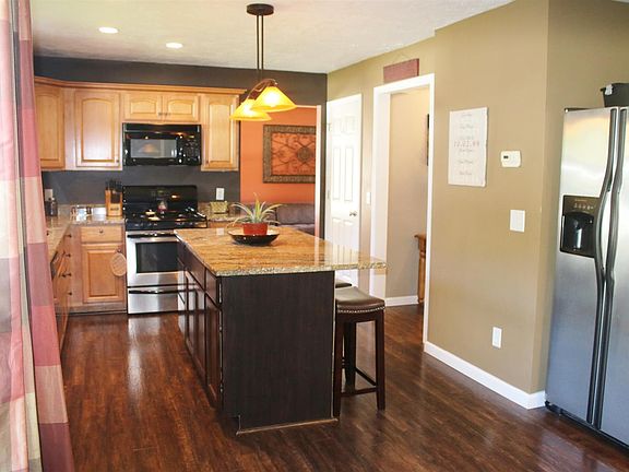 Wonderful 4 bedroom 3 bath home! Recently updated Kitchen with Granite counter-tops and island, newer maple cabinets. Hand scraped flooring throughout. Large Dining area that leads to back deck. Laundry room 1st floor. Office or possible 5th bedroom new carpet and freshly painted. Full basement part-finished. New carpeting, and perfect for entertaining. Large Master Suite. Great floor plan! On just under 1 acre! Full privacy fenced yard. Two plus car garage Must see!