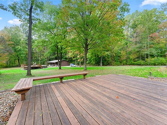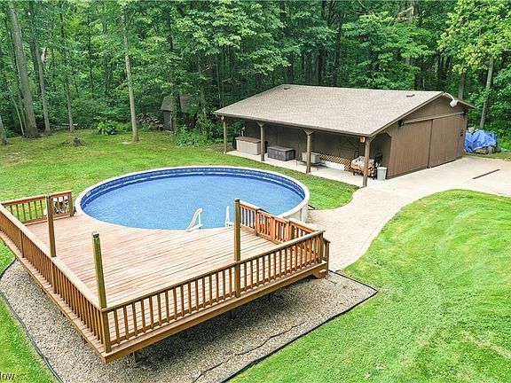 Situated on 5 acres, this 4 bedroom, 2.5 bathroom home is move-in ready and features a swimming pool, finished basement, and large outbuilding! The property is mostly wooded with mature trees. The driveway leads to the front of the house featuring nice landscaping, large front porch, and vinyl siding. Inside the foyer, you will be met with a large living room (or office), formal dining room, and great room with doors to the multi-tier deck overlooking the backyard. From here you can enjoy the wildlife and serene setting! The kitchen has an eat-in area and the stainless steel appliances are newer. Off the kitchen is the First Floor Laundry room and half bathroom. There is a 2-car attached garage plus a huge outbuilding with skylights, loft, concrete floor, water, and electric. Upstairs, there are 4 bedrooms including the owner's suite with walk-in shower and walk-in closet. The full bathroom has a beautiful skylight and vaulted ceilings. Don't miss out on the finished basement ~ there is a hot tub room with vanity, and 2 other carpeted rooms for entertainment, plus great storage space and even a small workout room! Great craftmanship with solid wood 6 panel doors throughout. Call today and capture your piece of the country! Maplewood School District
