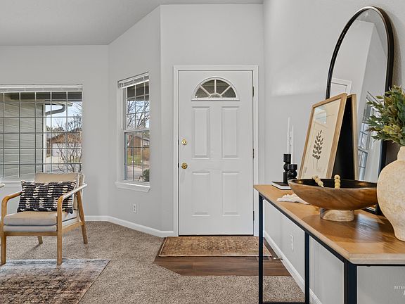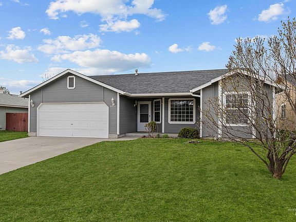 An exciting opportunity in the well-established Columbia Village! Charming single-level residence on a prime, spacious lot in a cul-de-sac. Direct access to the paved neighborhood path. A darling front porch opens to a bright & neutral interior, with soaring vaulted ceilings. Close proximity to the incredible community recreation center featuring a fitness center, racquetball court, disc golf course, sand volleyball court, and four swimming pools. Perfect split floor plan with 4 bedrooms & 2 bathrooms. All new carpet, flooring, and paint. Newer roof, HVAC system & water heater provides easy low-maintenance for years to come. Only 10 minutes from Lucky Peak and 10 minutes to downtown Boise!
