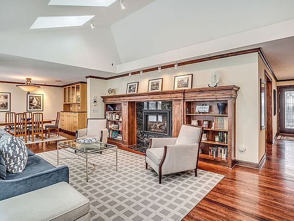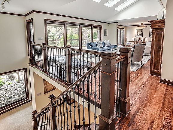 Renovated Parkwood Knolls home with contemporary details set on large waterfront lot. Open concept; vaulted ceilings; large kitchen with gathering island open to FR; extensive built-ins; large owner's suite with 2 walk-in closets, den and spa bathroom; 3 bedrooms on main level; exercise/sport room; LL FR w/ exceptional bar; designer fireplaces; extensive landscaping and sweeping pond views.