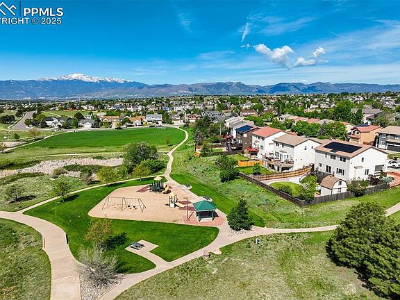 This beautifully renovated home offers 4 bedrooms, 4 bathrooms, and a 2-car garage. The fresh, low-maintenance stucco exterior and professionally landscaped yard provide excellent curb appeal. Step inside to the main level, where you'll find new flooring, updated light fixtures, and fresh interior paint throughout. The living room features a cozy gas fireplace and large windows that fill the space with natural light. The updated kitchen includes granite countertops, white cabinetry, matching appliances and pantry. Adjacent to the kitchen, the dining area showcases a stylish light fixture and walk-out access to a new composite deck with mountain views. A main-level office with French doors and a convenient half bath complete this level. Upstairs, the spacious primary suite boasts vaulted ceilings, a gas fireplace, large windows with mountain views, a walk-in closet, and a 5-piece en suite bath with an additional walk-in closet. Two generously sized bedrooms, each with walk-in closets, a full bathroom, and a conveniently located laundry room complete the upper level. The finished basement offers a welcoming family room with a gas fireplace, built-in bookshelves, a wet bar with mini fridge, and walk-out access to an extended concrete patio and backyard. A fourth bedroom and ¾ bathroom provide additional living space. Enjoy the outdoors with a new composite deck, extended lower patio, and a backyard that backs to open space. A paved pathway on the side of the house leads directly to Frank Castello Park, offering access to a playground, basketball court, open fields, and a circular paved loop—perfect for getting your steps in. Noteworthy features include: PV solar panels, a newer furnace and water heater, and a large storage shed, and access to fast-speed fiber internet through Metronet available in the neighborhood. Schedule your showing today!