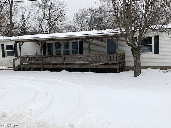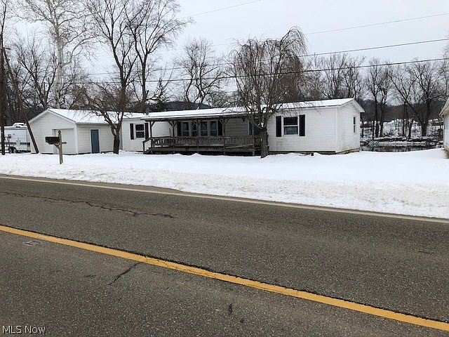 Awesome location. Water front home. Get your Kayaks and canoes ready! Nice double wide on a foundation with newer windows and doors. All new floor covering, paint, some new stainless steel countertops and 3 bedrooms 2 baths. Nice finished 20x45 garage. Property fronts the Tuscarawas River.