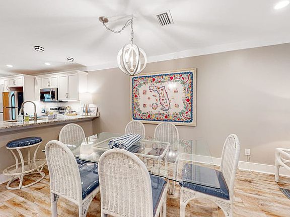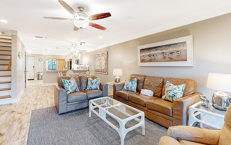 The sparkling white-sand beach is mere steps from this elegant three-story condo at Largo Mar, a gulf-front complex where you’ll spend your days swimming, sunbathing and collecting seashells on the beach. Largo Mar is a one-of-a-kind gated community on Thomas Drive - you can’t get any better than this! No waiting on elevators - you park right at your front door. One of the wonderful features of this community is the outdoor space it provides. Each bedroom has a balcony and the ground floor provides two furnished patios for coffee and cocktails, depending on what time it is! And don’t forget about the beach, the pool, the hot tub and the shuffle board court! The condo is fully renovated with new hurricane doors and windows, LVT flooring and beautiful furnishings. The access to the beach is fantastic! You exit out the sliding doors to the back patio, and then the gulf is a few steps through the beautiful courtyard. Walk along with the giant pool to the passover deck, which puts you right on the gulf and the white sand. This is a very well-maintained and family-friendly complex. Rental history available upon request.