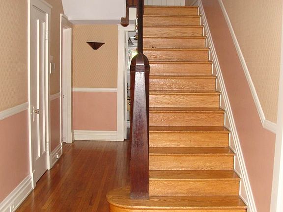 Built in 1912, this beautiful house has touches of Craftsman architecture, and lots of warm woodwork. The large, open rooms and large wrap-around porch are great for family entertaining. The first floor has a large living room with working fireplace, inglenooks, and original leaded glass windows. There is a sun room, dining room, powder room, kitchen, pantry closet, breakfast room and mudroom. The kitchen, and powder room were renovated 6 years ago, and the breakfast room, pantry, and mudroom were added at that time. The project received the 2008 Mount Washington Improvement Association Excellence in Design Award. Custom quarter-sawn oak cabinetry with soapstone countertops. The second floor has a master bedroom with two closets, a master bath with a linen closet, three additional bedrooms with large closets, a hall bath and a second linen closet. Both bathrooms have been renovated. The third floor has two bedrooms, a full bath (with an original claw-foot tub), and a large storage room that could be finished. Full basement has a classic Baltimore Flush (enclosed toilet), washer/dryer, plenty of storage, and half has been painted and can be used for exercise equipment.