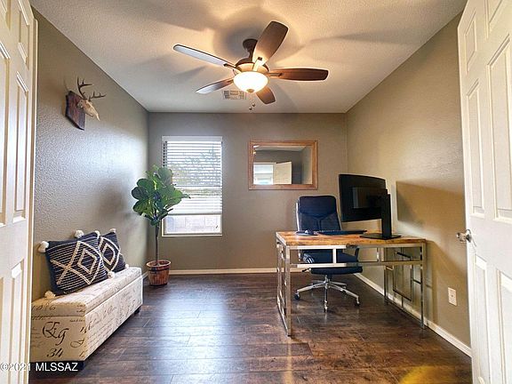 Premium vista view lot cost owner an extra $20k in 2005; no neighbors behind or to east with beautiful unobstructed sunsets and city lights. Homes will never be able to be built behind the house due to natural wash area. 1588sf great room plan contemporary with 3 bedrooms, 2 baths and den. House pre-wired for surround sound audio. Custom outdoor patio that runs entire length of the house, 35.5ft x 10ft, joins existing patio for a total of 500sq feet of covered patio area with misters.. finished with premium pavers. Custom finished espresso kitchen cabinets and large island with granite countertops. Garage is fully finished/painted with the floor epoxy coating for quick cleanup.