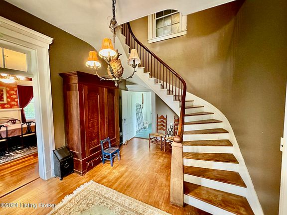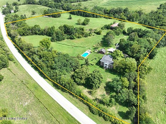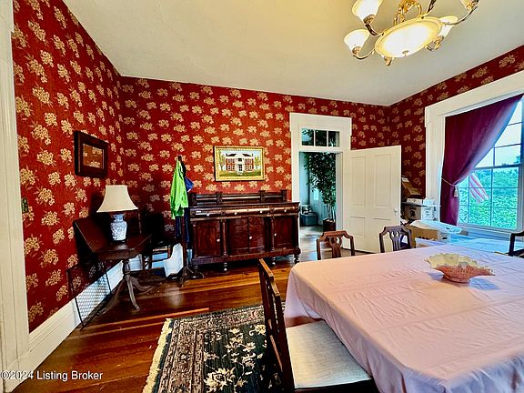 This house of history is the original Thomas Goddard Hamilton built circa 1854! This home is on the National Registry of Historical homes and has all the curb appeal you look for on a private 16.5+/- acre hobby farm! The home is nestled in the trees between Springfield and Bardstown right along the Bourbon Trail! As you come in the front door, you're greeted by the original stairwell with handmade railing. As with homes built in this time period, there are two large rooms off the foyer. Currently the room to the right is the primary bedroom with 10 foot ceilings that are present throughout the original home on the first floor. To the left of the foyer is the formal dining room with hardwood floors and fireplace. Also on the first floor is the kitchen with eat-in area, large living room with access to the back stairwell, full bathroom, laundry room with pantry and sitting area. Upstairs you'll find 3 large bedrooms with closets. There are 7 fireplaces throughout the home. Outside there is a covered screened in porch area offering shade from hot summer days and cozy back patio. There is a tobacco barn ideal for storage, two ponds stocked with fish, and your own inground swimming pool! This property would be an ideal Bed & Breakfast or venue for events/weddings! Call today to schedule your own tour as this home has so much to offer!