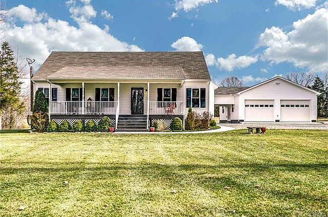 Welcome Home to 5718 Broad Street Road!!! This property is ideally located halfway between Richmond and Charlottesville, with quick access to I-64.This house offers 4 bedrooms and 3 bathrooms. The spacious eat in kitchen includes a bay window that looks out to the well manicured lawn and patio area connecting the house and garage. This 3 car garage/workshop has an efficient floor plan that allows for ample storage, as well as use of all three bays. The front two bays include a lofted area above, while the third bay is outfitted with eight inch poured concrete that allows for it to support the weight of a full size car lift if wanted. The first level includes the master bedroom and one additional bedroom. The family room includes a large flat screen TV that will be left with the house due to its state of the art wall mounting system. The second level features two bedrooms and an additional bathroom. All of this on 10 acres with creek!!!!! There is a additional one car garage with pole shed attached that could easily be converted into stalls. Just in case you have or want horses!!!