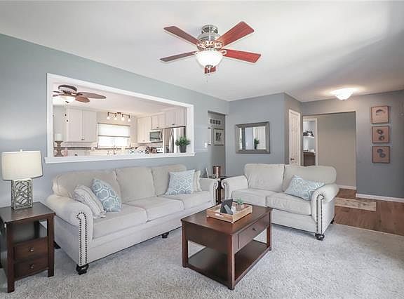 You will love the updates in this bright and cheerful home. New kitchen with high quality cabinets with crown molding, granite counter tops, upscale stainless appliances, lazy susan and don't miss the pull out spice drawer. This wonderful kitchen has a pantry and handy breakfast bar also! You will love the newer wood grain porcelain floors in main living areas and carpets in the bedrooms. Main floor baths have been updated and replacement windows throughout. Plenty of room on this expansive 23x18 deck to entertain and enjoy the Gas BBQ Grill. Vacation at home this year and enjoy the community pool, tennis courts and play area. Explore the nearby Cliff Cave Park with its hiking and bike trails with views of the Mississippi River. Your favorite part of the home may be the finished lower level with custom wet bar, bathroom, fireplace & home office space. Tidy storage/laundry area has laundry cabinets and folding counter. There is something for everyone in the fantastic family home!