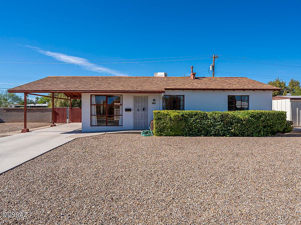 This 3BR/1BA brick home sits in a quiet, Central Tucson neighborhood and boasts charming curb appeal, a large back yard, a great sized covered back porch and a block wall. Updates include newer cement drive, water heater & roof! Much of the home is original, but there is so much potential to make this your own and/or turn it into a great rental property! Same owner for the last 53 years, which is rare and heartwarming all in itself!