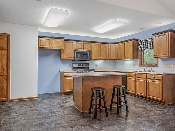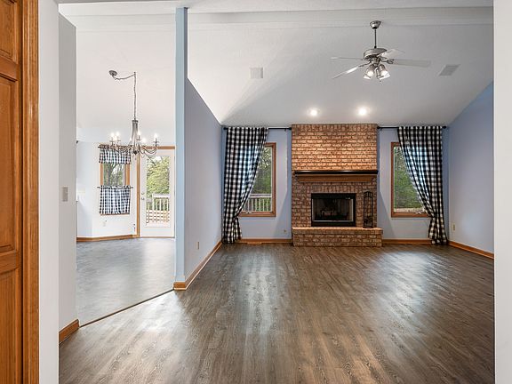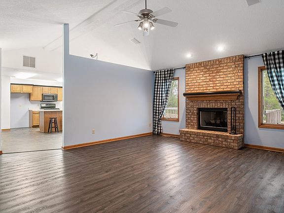 Beautiful new flooring in Great Room, Large kitchen and both bathrooms. The foyer opens in to the spacious great room with cathedral ceilings and gas log fireplace. Super large eat in kitchen has 8' center island. All new appliances, range, microwave,dishwasher. Cabinets have crown molding stained in black which really gives it an elegant look plus all new updated hardware. Master suite with walk in closets and master bath. Full finished basement with wonderfull bar to entertain with plus 1/2 bath and seperate room for exercise or den. Interior freshly painted. Private backyard backs up to wooded area with brand new fence. Large deck with built in hot tub, (new drain pump recently installed). Very few ranches on a full basement in this price range!
