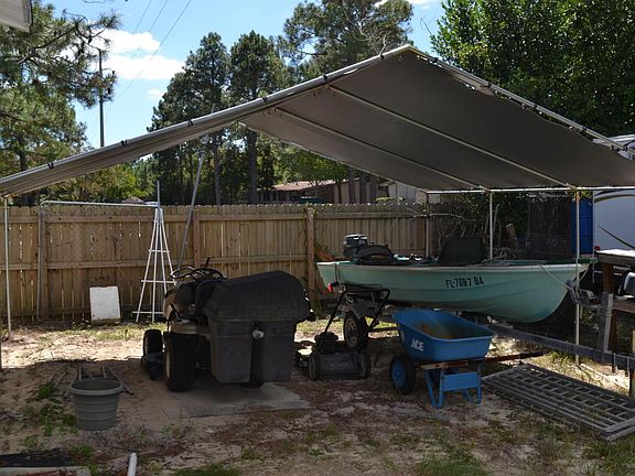 This great 3 bedroom/ 2 full bath home has been fully renovated and is ready to move into. The kitchen has been updated with newer cabinets, appliances have been replaced in last couple years. Freshly painted interior and new carpet in bedrooms. Remainder of home is tile. There is a 22x15 bonus room that can be kid's playroom, gym, hobby room, second living area, and it also has a 4x7 office nook with built in desk. There is a spacious laundry room. Master bath is updated, and rooms have good closet space. The outside screened porch is a great place to hang out overlooking the small pond with fountain, and then there is the huge 40x22 carport with very high ceiling for parking RV's or boat with a tower. There is two sets of pull down stairs with floored attic space for more storage