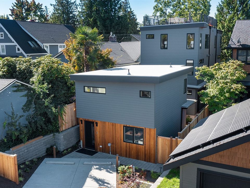 Premier, local luxury home builder RD Homes offers rare opportunity for "cottage" home located on one of the "K" streets in most sought after location of Green Lake, one of Seattle's most desirable neighborhoods. Walking distance to the lake, Tangletown shops, restaurants and cafe's. Very convenient to Downtown, South Lake Union, I5 and transit. Superior level quality! Stunning design, finish and details. Open,flowing floor plan perfect for relaxing & entertaining. Spacious kitchen with European appliances and island. Private suite with heating/cooling, en-suite bath and walk-in closet. Assigned off-street parking wired for EV charging. Designer modern lighting and hardware. Ring doorbell. Rare 2 baths on upper level.