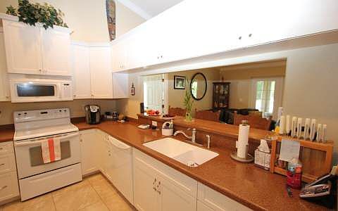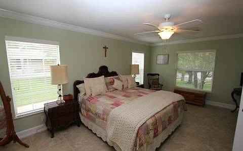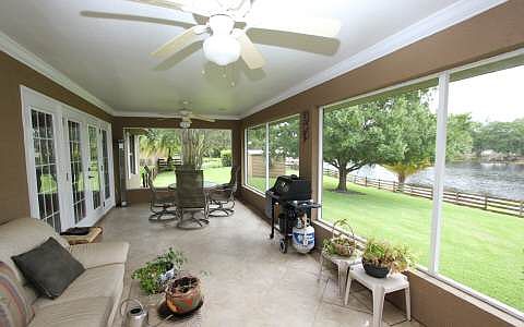 Beautiful custom home on Keys Lake. This home is situated on two lots with 150' of lakefront. A front porch with whiite railing greets you as you enter through a beveled glass front door. Enter into a great room/dining room combo with galley kitchen, step-up breakfast bar, white cabinetry, Corian countertops and pantry. French doors offer lake views and open to a spacious screened porch. Generous size master suite overlooking lake. Large walk-in closet. Master bath with step in shower and dual sink vanity. Secondary bedrooms share a hall bath with door to deck and hot tub. Fenced backyard & boat dock. Easy maintenance home with metal roof, thermopane windows and porcelain tile throughout. Extras included crown molding, tall baseboards, Outside has RV parking/pad and storage shed. Beautifully landscaped.