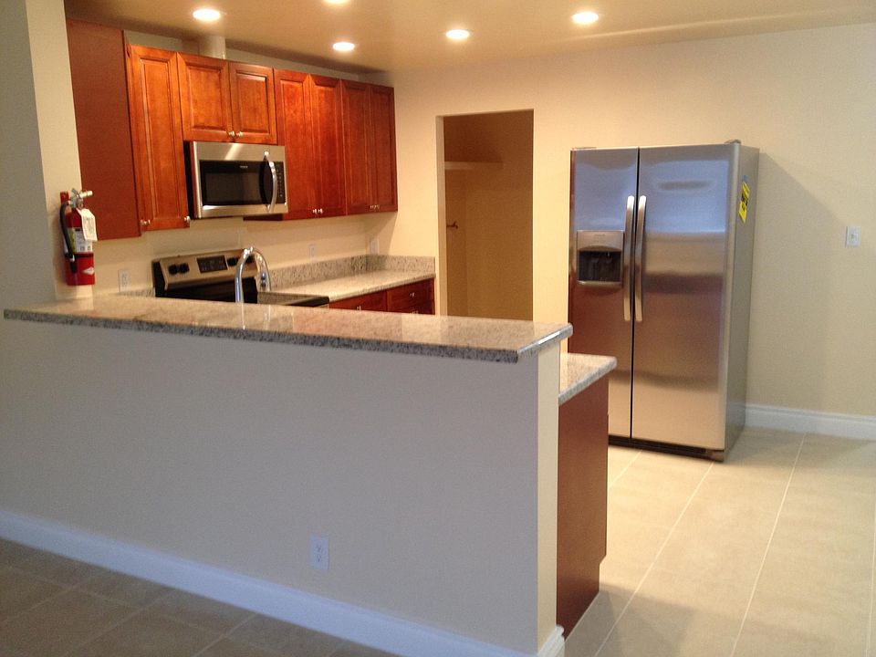 Newly renovated 3/2 has an open concept kitchen complete with modern stainless steel appliances including a side by side refrigerator with ice and water in door, dishwasher, ceramic top range, and microwave with exhaust vent to the outside. Next to the kitchen there is a walk in pantry with plenty of shelves and washer dryer hook ups. Modern high efficiency central air to keep you cool in the summer and warm in the winter. Impact windows throughout mean you don't have to worry about shutters during the storm season. Wall to wall tile. 2 assigned parking spaces. Owner pays for A/C filters, water, sewer and trash pickup. Tenant pays for electricity, cable and internet.