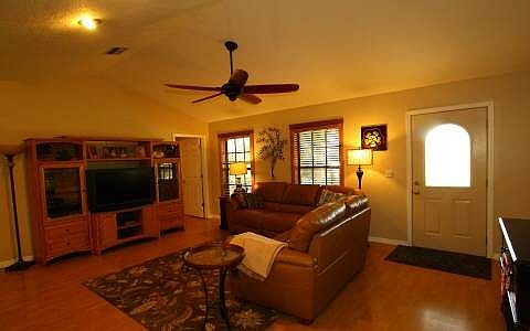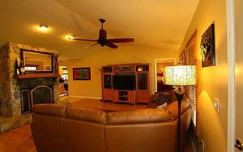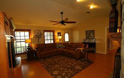 Charming country home recently remodeled, shows like a model home. The oversized living room is wonderful for entertaining featuring wood laminate flooring, wood burning fire place, ceiling fan, warm interior wall colors. The dining room is open and spacious and overlooks the tiled family room. The kitchen has been remodeled and features, oak cabinets, recessed lighting, counter seating, stainless steel appliances, pantry, and eat in nook. The split floor plan has a beautiful master suit, ceiling fan, wood laminate floors, larger walk in closet, with plenty of windows. The master bath is stunning featuring beautiful custom tile, recessed lighting, granite vanity counter tops, glass shower doors, warm interior colors. The second and third bedrooms also feature wood laminate flooring, ceiling fans, large closets, lots of windows to beautiful warm natural lighting. The large garage, has attic access.