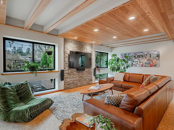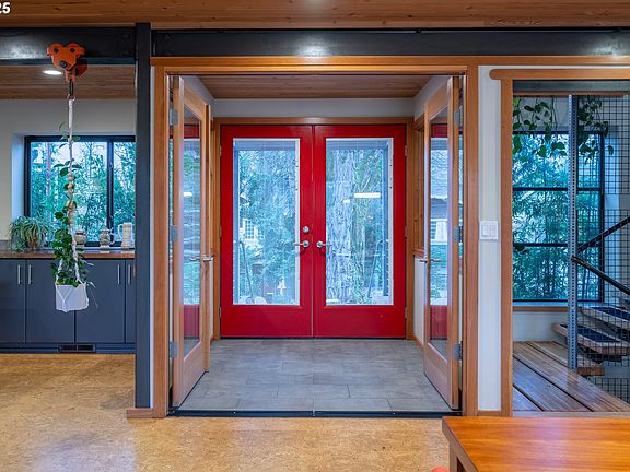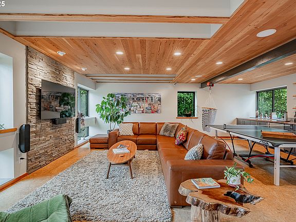 This stunning architecturally designed NW Industrial 4-bedroom, 3.5-bathroom home spans 4,000 sq ft on a 1/4-acre lot, featuring green energy-efficient construction, steel and ICF exterior walls, and a standing seam metal roof. Inside, enjoy a modern open floor plan with cork floors, reclaimed Doug Fir ceilings with coffered accents, and a gourmet kitchen with a copper island, Dacor stainless appliances, and a walk-in pantry with a sink. A flexible maker's space adds versatility, while the game room with a kegerator and large, multi-purpose basement with natural light and a private bath offer ample entertainment space. The vaulted-ceiling primary suite has a custom reclaimed headboard, built-in dressers, and a luxurious bath with a Jacuzzi tub and walk-in shower. Three additional spacious bedrooms feature built-in desks and organizer closets. Outside, enjoy a beautiful yard with native drought-tolerant plants, a large patio, fire pit, and room for a pond. The master gardener’s dream includes irrigation, a 200 sq/ft shed with a loft and yoga space, and a glass greenhouse. The deep two-car garage features a workbench and wall hook system for easy storage. Located on a quiet street with easy access to downtown, freeways, Gabriel Park, and Multnomah Village, this home is within a short distance of top schools. This eco-friendly, modern home offers the perfect blend of design and location. Home Energy Score = 9! [Home Energy Score = 9. HES Report at https://rpt.greenbuildingregistry.com/hes/OR10236628]