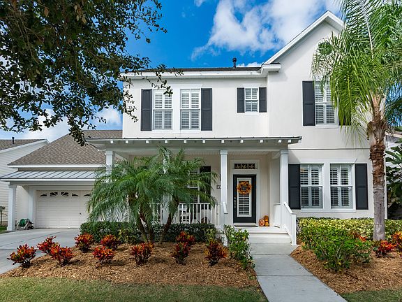 Waterfront! MiraBay's Coastal Living at it best! One of a kind homesite with amazing panoramic water views! This gorgeous home offers 3555 sq feet of living space including 4 bedrooms, study, formal dining room, large eat in kitchen, open family room, loft AND 3 car garage! The western exposure from the back yard offers amazing sunsets and water views from the screened lanai. Upgrades include a brand new 15 seer 5-ton AC unit, hand scraped, dual stained maple hard wood flooring, stone countertops, 42 in wood kitchen cabinets, crown molding, upgraded designer carpet, custom plantation shutters and much more! Location is one of a kind...the backyard offers plenty of space to add a pool with loads of room for outdoor entertaining. The additional parcel of land on the water is an excellent option for a cool play area for 'kids' of all ages. Utilize it as a place to launch your kayak, canoes and paddle boards as well as a great fishing spot! Start living the coastal lifestyle that MiraBay has to offer! The owners have taken exceptional care of this immaculate home...and it is truly move in ready!