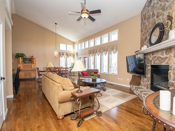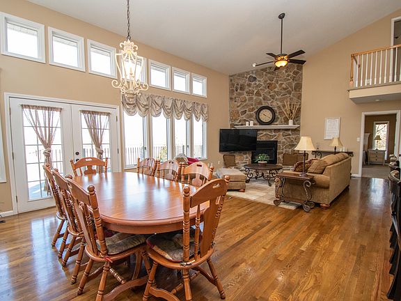Enjoy spectacular sunsets & seasons w/ the romantic setting of this luxurious home. Soaring ceilings, rich wood floors & a massive stone fireplace give the living rm a touch of grandeur while the walls of windows showcase breathtaking views. The chef's kitchen features stylish cabinetry atop gleaming countertops & stainless steel appliances. Dine under the chandelier of the open dining space. The royal master suite is sure to please w/ double vanity, jetted tub & separate shower. Natural light pours into the finished basement where the fireplace warms the family rm and tall ceilings give it an open feel. 2 bonus rooms downstairs can easily be used as 4th & 5th bedrooms. Relax in the screened porch or the sprawling deck featuring the best view. This one of a kind home is waiting for you.