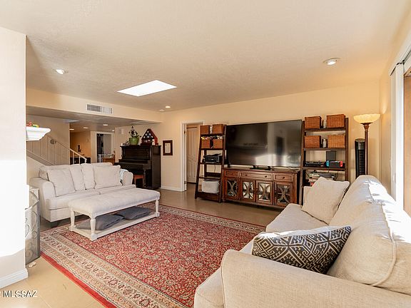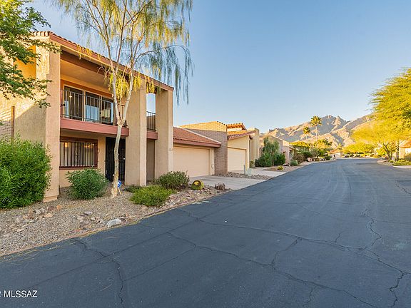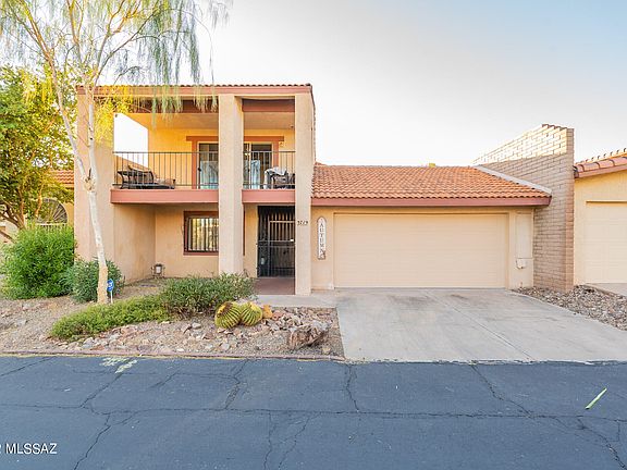 This three-bedroom, three-bath north/south exposed home. Is located just west of Swan and north of Sunrise, a terrific location for schools; very close to Catalina Foothills High School, shopping & restaurants. Formal living and dining room, eat-in kitchen, fireplace in the living room. The primary and 2nd bedrooms are both downstairs 3rd bedroom is upstairs with a full bathroom and balcony with mountain views. Outside has a large patio, with pavers, a block wall, and incredible Catalina Mountain Views! The new built-up reflect roof was in 2022; the Tile roof was redone in 2020. This community offers in HOA trash, cable, a pool, tennis, spa, basketball court, library, and rec center. Downstairs has been freshly repainted. At this price, this house won't last! It's a must-see!