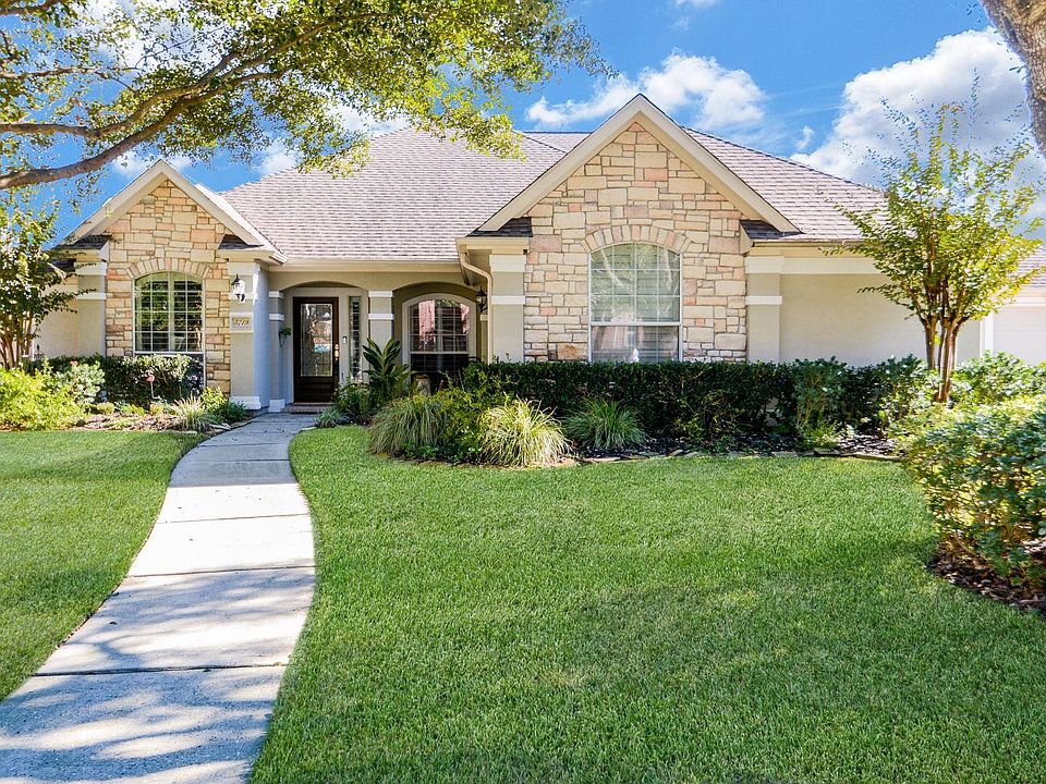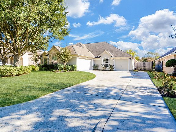 Do you like to entertain? Need room for family get togethers? THIS IS THE HOME FOR YOU!!! Highly sought after beautiful 1 story in Klein ISD. Beautiful Inviting Family Home with room for all! Features include designer paints, unique architectural ceilings, custom plantation shutters, crown molding, living area with hard surface floors of wood & 18 porcelain tile upon an oversized park like lot on quiet street. The Grand Living Room with high ceilings & arches is the center of this flexible split living space with the dining room, kitchen, den & master suite on one side and the office plus three additional bedrooms on the other side. Split Floor Plan offers room for everyone to work, study, play, exercise or enjoy the neighborhood amenities of parks, trails, tennis courts, basketball and swimming pools.