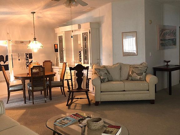 This fully furnished, turnkey home is available until 01/02/2021. Off-season lease now-October is $1300. Peak season lease 10/01/2020-01/02/2021 is $1600. Golf cart use included. Home is on a beautiful perimeter lot with no neighbors behind the home, just lots of scenery and nature. Home has large Florida room with lots of windows for natural light as well as a back patio for enjoying the outdoors and grilling/entertaining. Long/covered carport, gated community. Everything needed to show up with suitcase only. Home is fully turnkey ready Community Amenities: Gated community, 3 pools, hot tub, 2 clubhouses, shuffle board, putt-putt golf, pickle ball, numerous hospitality/planned social events, and so much more! Lease includes all utilities: water, electric, wifi, and tv, as well as use of all the community amenities. A small dog may be accepted. Must contact for further information. No cats. Park application/approval must be obtained contact agent for more info.