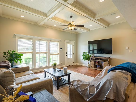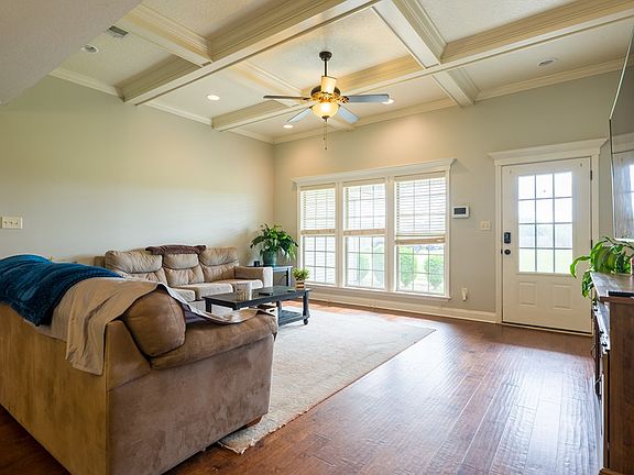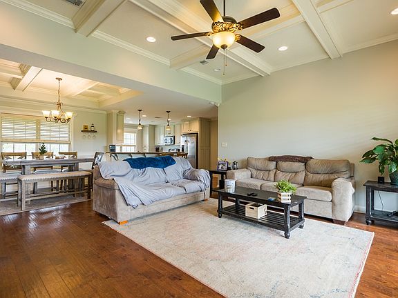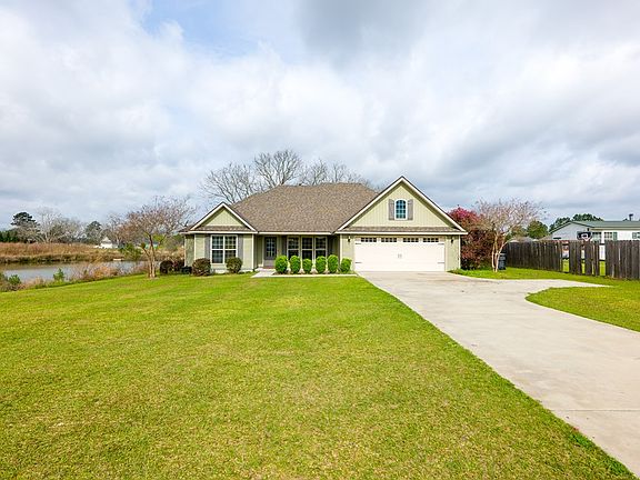 Great 4 Bd/2 Ba home in Lakeland on 1.48 Acres! House has warm and inviting front porch to welcome you home! Large living room with coffered ceilings opens up to dining room and kitchen with hardwood floors through out the main living areas. Kitchen has all the cabinet and counter space one would need as well as matching SS appliances. Master Bedroom is spacious with one walk thru closet and another small closet along with airy tray ceiling. Master Bath has jetted tub as well as tiled shower and linen closet. Split floor plan has 3 bedrooms on the other side with large closets in all. Second bath has double vanity and a pocket door to close off bath/toilet from vanity area. Bedrooms are carpeted with baths and laundry having tile. Enjoy the view from roomy back porch overlooking the neighboring ponds. Additional patio space ready for entertaining. Backyard is fenced.