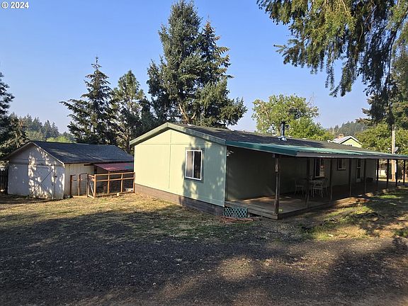 Rare Find! 1620sqft three-bedroom two bath manufactured home with open floor plan and vaults, expansive covered deck on 3.2 acres. Fenced pet area, single car garage/shop, pasture, several fruit trees, walnut tree and a large old hickory tree, creek, and a landmark 1890 home that has been used for storage, and an equipment storage shed. You will love the country feel and views of the valley and coast range.