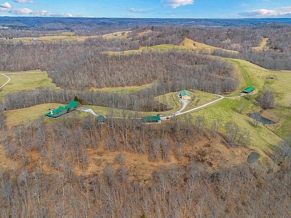 Welcome to an extraordinary 321.5-acre estate where luxury meets functionality in the heart of a fully operational cattle farm. This unique property is a rare gem, featuring 9 ponds, 6 barns, a gated private entrance, automatic waterers, and fully fenced pastures designed for seamless farm operations. At the center of it all is a breathtaking 5,000 sqft log home, a true masterpiece of design and top-notch craftsmanship. It features a magnificent wrap-around porch, soaring 25-foot ceilings, floor-to-ceiling windows, and heated floors throughout, including in the 3-car attached garage with RV-sized bays. The home's focal point is a magnificent dual-sided towering stone fireplace that serves as a captivating centerpiece, making it an ideal gathering spot. The large open rooms flow seamlessly and are filled with natural light, creating a warm and inviting atmosphere while providing spectacular views. The gourmet kitchen is a dream come true. It features top-of-the-line professional appliances, including a Wolf gas oven, a Sub-Zero refrigerator, warming and cooling drawers, an ice machine, and more. The combination of granite countertops and exquisite cabinetry offers both beauty and functionality, while the large center island provides an ideal prep area. With additional bar seating and an impressive extra-large dining table, everyone has ample space to come together. The exquisite primary ensuite is a private retreat, offering two oversized walk-in closets, a stylish home office with custom built-ins, and elegant French doors with outdoor access. A stunning stone fireplace highlights the spacious bedroom, and the vaulted ceiling enhances the sense of openness and grandeur. Beautiful French doors open to the gorgeous wrap-around porch with a cozy outdoor fireplace, and the spa-style bathroom features a large tiled shower and dual vanities. The guest wing offers 2 well-appointed main-floor bedrooms, each with a stylish full bath and French doors with porch access, enhancing the home's effortless indoor-outdoor living experience. A second service kitchen and laundry area is a functional and versatile space boasting four washers and dryers and top-of-the-line appliances. The extra-large garage includes a full bath and lounge area, and above, there are two additional relaxing bedrooms, further enhancing the living space of this remarkable home. Outside, the estate continues to impress with six barns of various sizes and styles, two large carports, rolling fenced pastures, nine ponds, and a private drive leading to the stunning lodge-style home. This is more than just a farm—it's a once-in-a-lifetime opportunity to own a property that offers unparalleled luxury and fully functional farm operations. Don't miss your chance to own this extraordinary estate. Schedule your private tour today to experience its luxury and functionality firsthand!