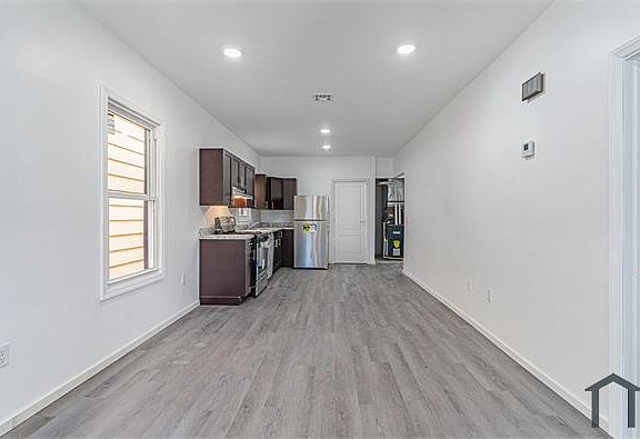 Beautifully Gut Renovated Open Concept 3 bed 1 bath Apt with Washer/Dryer In Unit Section-8 friendly! Please have your RTA packet ready. No broker fee. This beautiful open concept 3 bed 1 bath 2nd fl apt has undergone a gut renovation in 2022. All new electric, plumbing, central forced air heating, central AC, roof, windows, kitchen, bathroom, flooring, and paint. Washer/dryer provided in unit. Large closets in each bedroom. Stainless steel fridge, stove, and dishwasher. 5 min from train. Shared backyard with privacy fence. Security cameras outside. For more properties like this visit Affordable Housing.