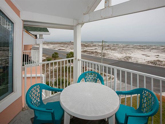 LOCATION LOCATION LOCATION!! Fantastic panoramic views of lots of undeveloped protected state park with white sandy beach and Alabama coastline. MANY UPGRADES.... SEE THE PICTURES. The living area is very comfortable including a sofa (queen sleeper), the kitchen is fully furnished, tile floors throughout except for bed rooms, 2 king beds, one in the master and second in the bed room in the loft. Flat screen T/V's, Hallway bunk beds, granite tile counter tops in kitchen and bath, stack washer/dryer, chair, accent & coffee tables, barstools, ceiling fan, and dining table with chairs. The living area opens directly to the balcony providing you and your family a direct view of the beach and Gulf from the living, dining, and kitchen areas. Close to shopping, dinning and entertainment. Deeded beach access directly across the street bordering the State Park.