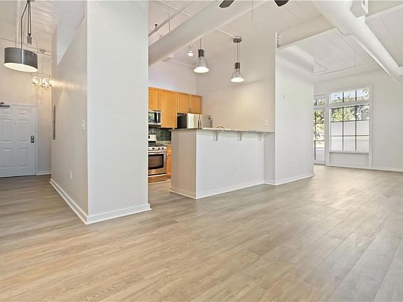 Discover unbeatable value with this trendy main-level loft in the sought-after Dynamic Metal Lofts community, perfectly located in the heart of Atlanta. This Spacious 875 sq. ft. studio-style residence showcases soaring ceilings, an airy open layout, and modern industrial finishes that give it a true urban vibe. Inside, you’ll find a generous bathroom, updated LVP flooring, and your own private patio—a rare bonus for city living. The community offers secured access with gated parking and one assigned space. Monthly HOA dues cover high-speed internet, cable, water, and sewer, plus access to a well-equipped fitness center and a rooftop terrace with grilling stations and dramatic sky line views. Moments from the Atlanta Beltline, Krog Street Market, Ponce City Market and best Restaurants Perfect for a student or first time buyer. This home delivers both lifestyle and convenience at a PRICE thats hard to beat.