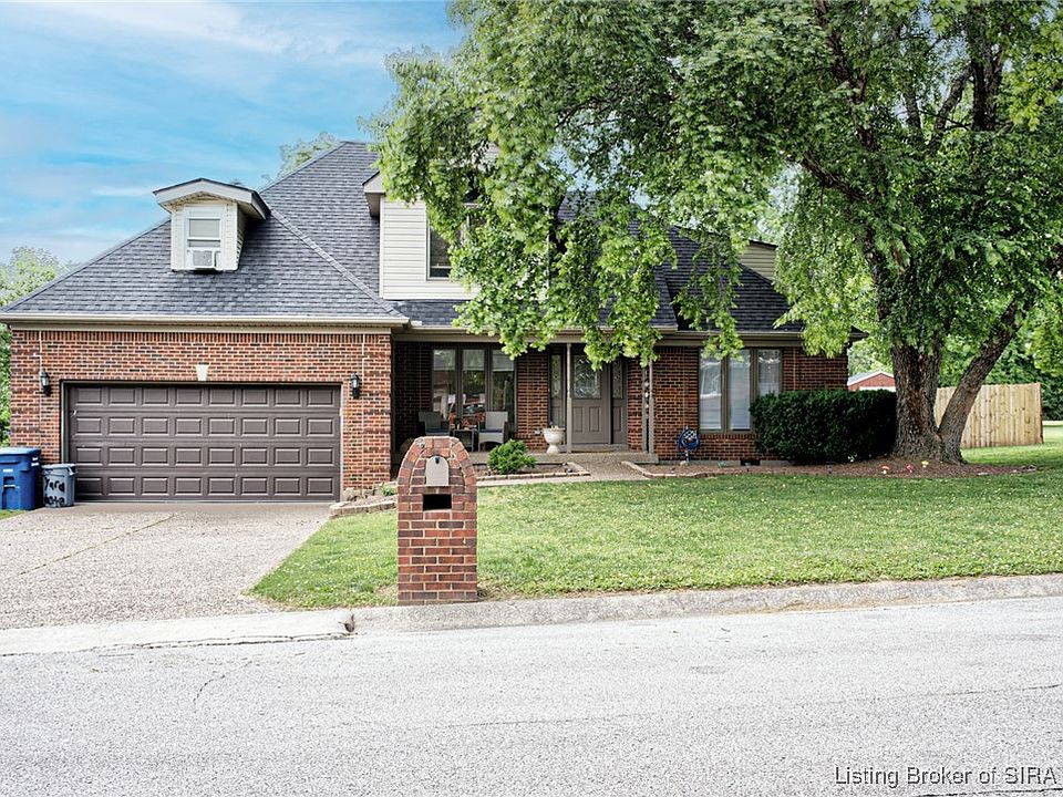 This move-in ready, brick 1.5-story beauty is nestled in a fantastic location of Sellersburg. With over 2,200 square feet, this home features 3 spacious bedrooms, an office/non-conforming bedroom and a bonus room, 2.5 baths, and a 2-car attached garage. Step inside from the inviting covered front porch and you’re greeted by a vaulted ceiling, warm wood floors throughout the main level, and a cozy gas fireplace in the great room. The open staircase leads to two additional bedrooms, an office & a versatile bonus room—ideal for a game room, workout room or playroom. The heart of the home is the oversized eat-in kitchen, designed for entertaining! It boasts an abundance of white cabinetry, a stylish backsplash, and stainless steel appliances. The main-level primary suite features a tray ceiling, bath with double vanities, jetted tub, tiled walk-in shower, and a massive walk-in closet with built-in shelving. Outside, your private backyard oasis with a half basketball court with a silverback goal, new covered deck, above-ground pool—complete with wide cake steps with rails, a poolside bar & stools. There's even a storage shed for all your outdoor essentials. This home has it all—space and style and all the extras that make life fun and comfortable. Schedule your private tour today and make this your Home Sweet Home! All kitchen appliances, corner cabinet in kitchen, shed, pool and accessories stay with home. Freezer and refrigerator in garage do not stay.