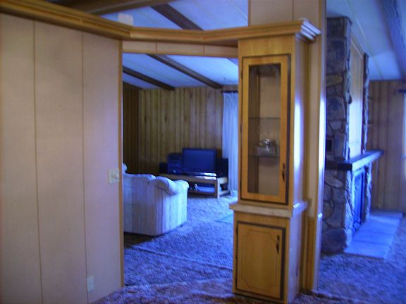 THE LAYOUT IN THIS HOME IS AWESOME. THE DINING ROOM AND ENTRY ARE RAISED. DINING ROOM IS SEMI FORMAL WITH 2 BUILT IN HUTCHES. A LIVING ROOM & A GREAT ROOM. THE WALL IN BETWEEN HAS A SEE THRU FIREPLACE (OWNER HAS A WOOD STOVE INSERT ON ONE SIDE WHICH HEATS THE HOUSE) WALL GOES TO THE CEILING WITH ROCK AND WOOD ACCENTS. THE GREAT ROOM & LAUNDRY ROOM HAVE ENTRY TO THE REAR DECK. THE KITCHEN IS ONE OF THE NICEST i HAVE SEEN. PANTRY, LOADS OF CUPBOARDS & COUNTER TOP SPACE, BREAKFAST BAR, WORK AREA, DESK ++++