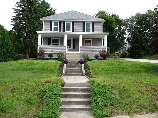 Vintage charm of this classic 'Four Square' style home built at the turn of the century in the desirable, sought after 'HANOVER HILL' area, has been preserved. Beautiful wood floors, moldings, stairwell railings, built-in china cabinet and doors w/original glass knobs throughout make this home distinguished. A grand foyer from the main entrance off a fully covered front porch is signature Four Square and elegant. The owner has thoughtfully modernized key components of this property that include a completely new eat-in kitchen, w/ample granite counter space, cherry cabinetry, gas range and stainless steel appliances.Over-sized full bath includes double bowl sink vanity w/tile floor. Washer/Dryer hook-ups on second floor. 1st floor office/den has original brick fireplace fitted for nat. gas insert. All rooms are bright, w/large easy to clean, new vinyl windows. Updated nat. gas boiler;vinyl siding. This over-sized, corner lot affords privacy. A MUST SEE to appreciate !