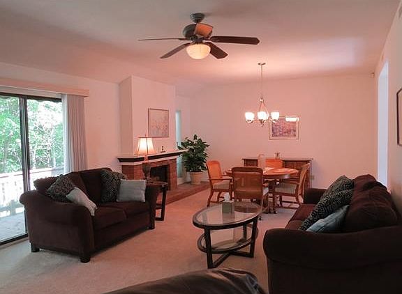55+? LIKE TO HAVE FUN? This is the location for you: Right across from Activities, GYM, pool, tennis courts, 3 clubhouses, art studios, and short walk down to pond's paved paths. Plenty of parking Garage under Carriage House 2nd in from left. Easy drop-off for groceries at entrance side walk. Large private deck in back overlooking woods, with steps down to grilling area just off deck. Largest 2-bedroom model, updated, bright and sunny Sherman, with common areas completely separated from bedroom wing, full master bath with shower stall, full guest bath with tub/shower. Storage closet for deck furniture at end of garage stall. Walk down to Deli, drycleaners, bank, package store, etc. Heritage Village offers a wonderful life style in a bucolic setting, with 86+ clubs, 4 pools, garden plots, woodworking/precision metal shop barn, 3 club houses, minibus, picnic area and pavilion too, and just one mile into Town. THE LANDLORD PAYS WATER & SEWER QUARTERLY as well as the HOA monthly charge. There is trash and recycling pick-up. Tenant pays electricity, cable, internet, phone, firewood if desired. One month's security deposit if 62+ Years, or 2 month's if 55-61 Years. This is a 55+ Active Adult Community. Credit rate of at least 700, background check and references required. No pets (Don't ask, sorry) No smoking in or directly around unit please. PLEASE WEAR MASK AND GLOVES WHEN SHOWING, THANK YOU (Photos showing prior tenant's decor.) Available 10/1, possibly before.