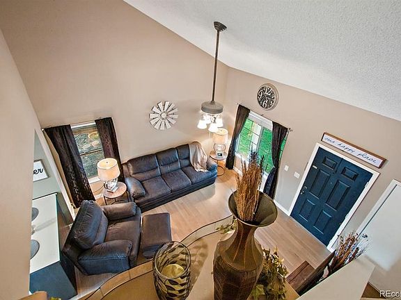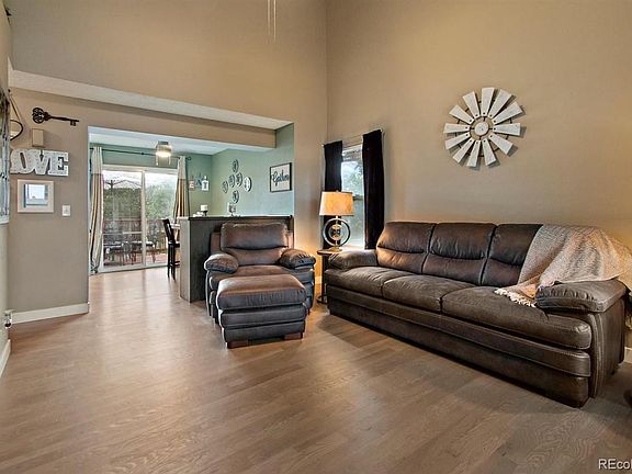 Must see this charming 2-story, 3-bedroom, 2-bathroom home in the Founders Village in Castle Rock! Located on a quiet Cul-de-sac, this very bright and open floor plan greets you with beautiful new White Oak Wood floors with a Satin Matte finish. The exterior of the home has recently been painted! Open living room area with a vaulted ceiling. The main level has a spacious master bedroom with a large walk-in closet and its own bathroom. Upstairs you will find two nice sized bedrooms and a full bathroom. The kitchen has a small pantry with plenty of cabinets and counter space. All appliances stay!! Nice eat-in space off of the kitchen with patio doors leading out onto your backyard deck. Central A/C will keep you cool in the summer! HOA is only $50.00 a quarter which includes trash, recycling and a fun neighborhood pool! Enjoy a beautiful Colorado night relaxing in your low maintenance backyard with a privacy fence all around. All you need to do is move in and make this your happy home!!
